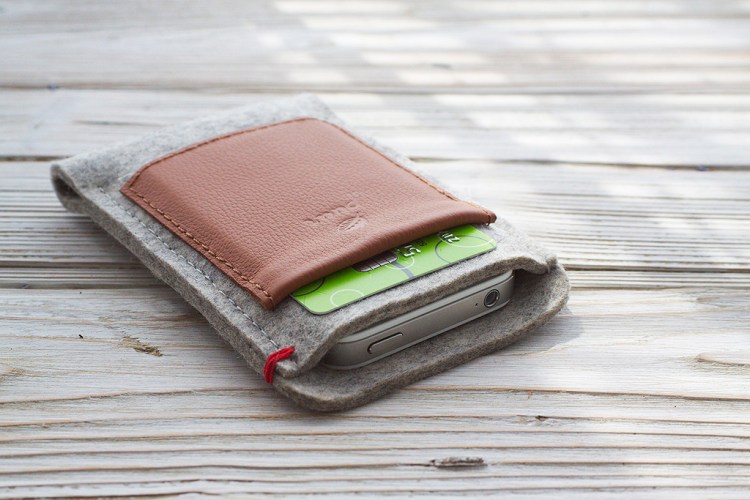 Made from a combination of anthracite 100% Merino wool felt from Germany and high quality leather, the Purrco iPhone case feels and looks great in your hand or pocket. Also, the credit-card-pocket is made from high quality 100% vegetable-tanned leather and hand-stitched to base, which gives it a very soft and elegant touch.